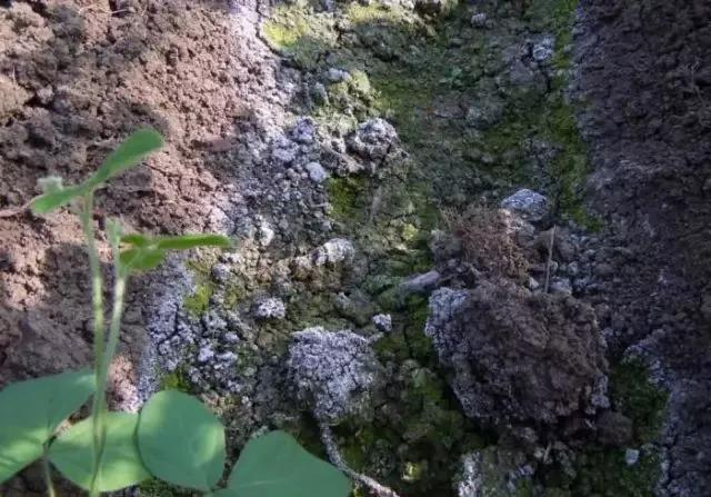 因?yàn)榛蔬@個東西,咱們老百姓叫做“化肥”,其實(shí)化肥在化學(xué)上講,它就是一個無機(jī)鹽,它就是“鹽”。這個東西你往地里用多了,肯定會造成土壤的板結(jié)和鹽漬化。這個板結(jié)是:原來的土地是好好的、挺松軟的;但是,作物種上三、四年之后,你會發(fā)現(xiàn)土壤都是硬棒棒的,棚里地表起“青苔”或泛“白霜”,這就是土壤的鹽漬化。